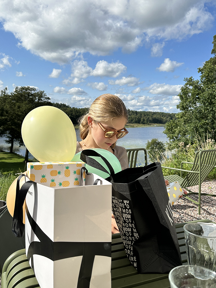 Igår fyllde Embla 15 år! Vi firade som alltid med tårta, sång och paket på sängen. Sedan blev det hästmys och ett dressyrpass med Danne. Efter lunch hade vi familjen över på födelsedagsfika. Verkligen supermysigt! Dessutom sken solen och vi hade sommarvärme. Dagen bara försvann som alltid när man har trevligt och framåt kvällen åt vi mängder av sushi enligt Emblas önskemål. En riktigt bra födelsedag!