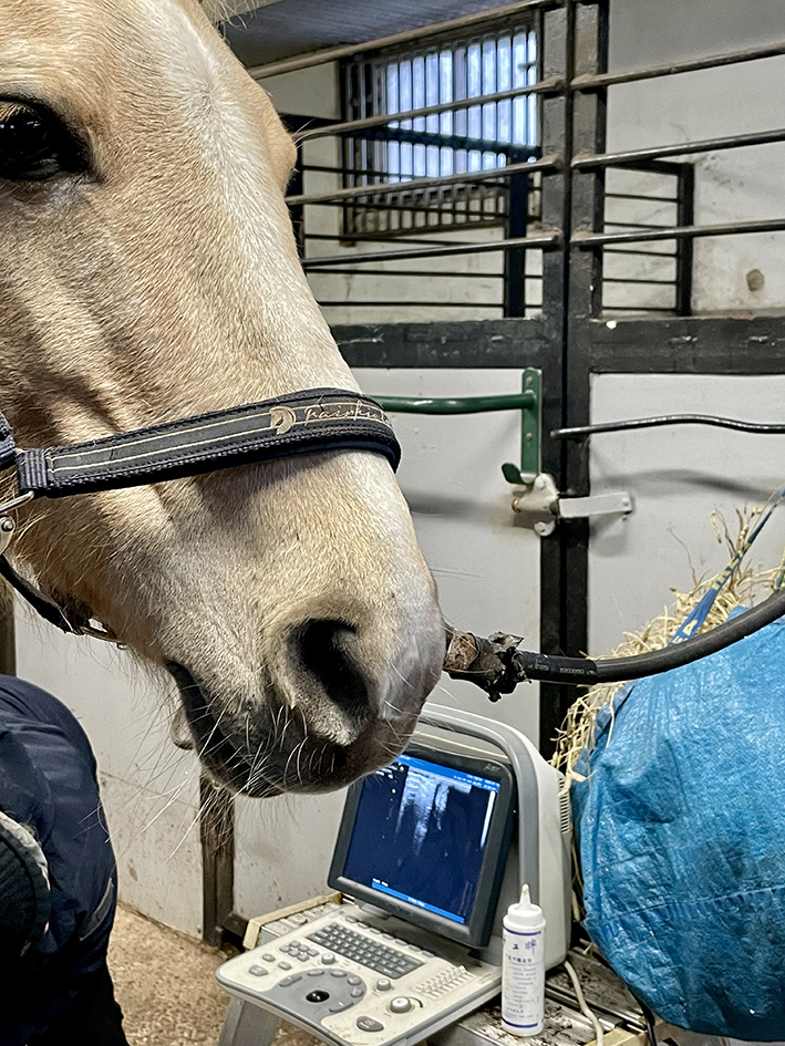 Idag hade jag veterinären ute för att göra ett ultraljud på Daisys svullna ben. Vi skulle egentligen ha gjort det för två veckor sedan men då var benet alldeles för svullet. Idag hade svullnaden gått ner så pass att det gick att titta på senorna. Det visade sig att hon har en skada på djupa böjsenans förstärkningsband. Allt går åt rätt håll men det kommer ta tid att läka. Hon ordinerades 15 minuters promenad per dag  i ytterligare fem veckor och sedan ett nytt ultraljud.