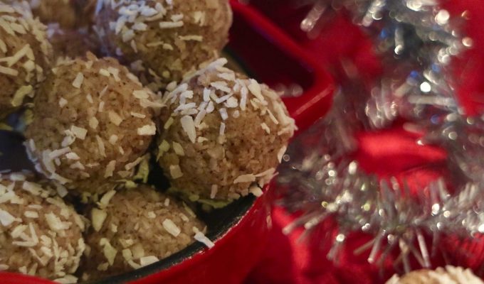 Jag ändrar alltid receptet på bollarna efter vad jag har hemma i skafferiet men det blir oftast torkade aprikoser eller dadlar, nötter såsom cashew och valnötter, mandelmjöl, kokosolja, fairtrade kakao och stark espresso från min Jura. Toppat med kokosflingor eller nötkross.